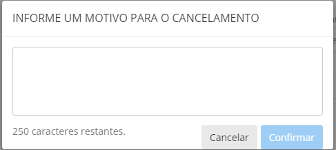 Além disso, é possível cancelar ou imprimir o processo. Em caso de cancelamento, é necessário fornecer um motivo.