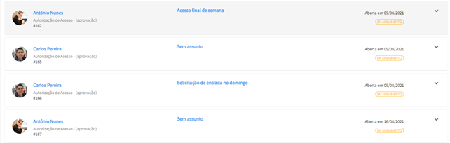 Essa seção permite ao usuário visualizar todas as solicitações que ele enviou ou que ele está gerenciando.