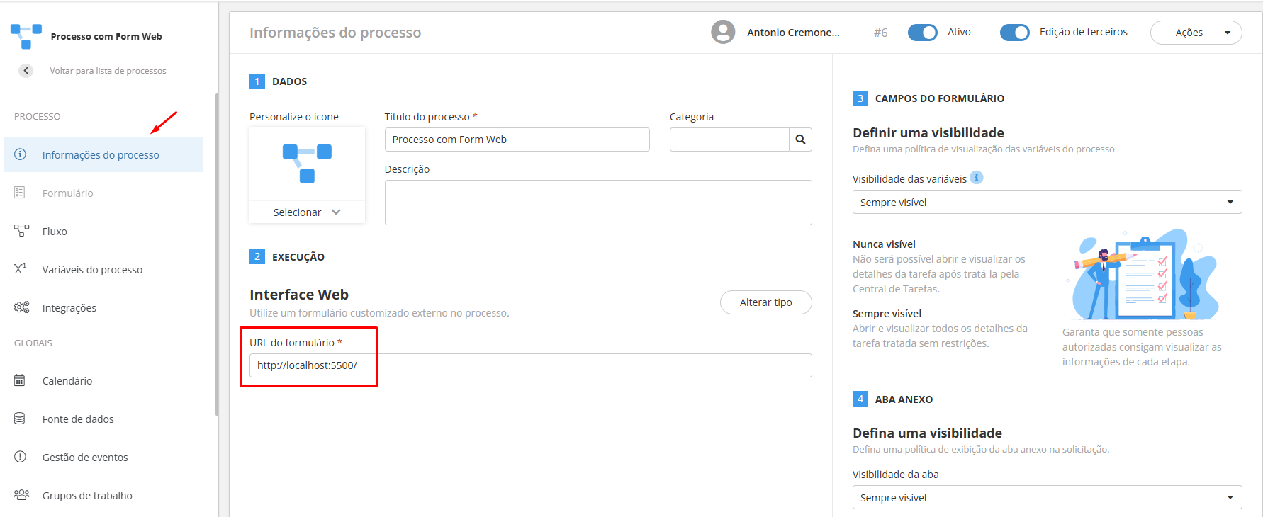 3.6.4 Exibição do Formulário Web na Central de Tarefas