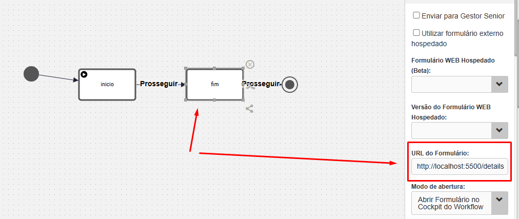 Ao acessar uma solicitação em andamento ou concluída pelo menu Solicitações ou Gestão, a URL do formulário web configurado na definição do processo deve ser renderizada.