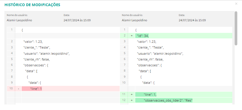 Uma tela será exibida com as alterações correspondentes a essa etapa do processo, facilitando a visualização e o controle de cada etapa.