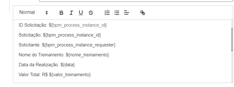 Para utilizar uma variável de processo, basta empregar o padrão ${nome_da_variavel}.