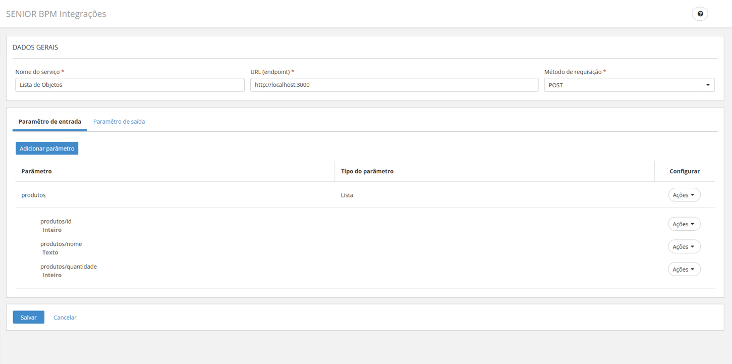 2.3 Configuração de um Serviço de Integração com Lista de Objetos