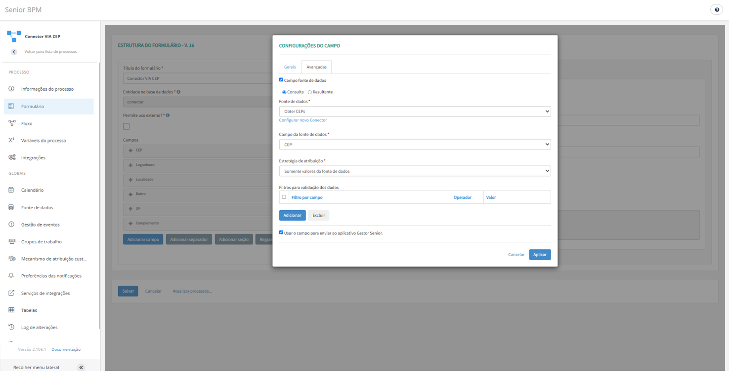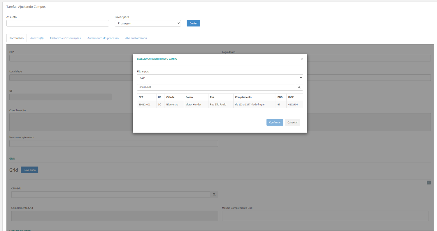 No campo CEP, criaremos uma consulta utilizando uma fonte de dados — especificamente, a que acabamos de configurar.