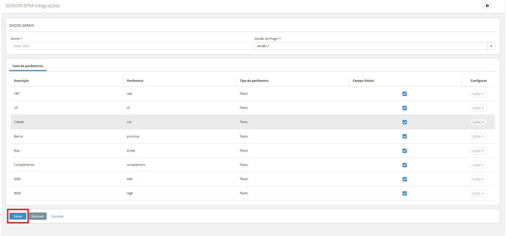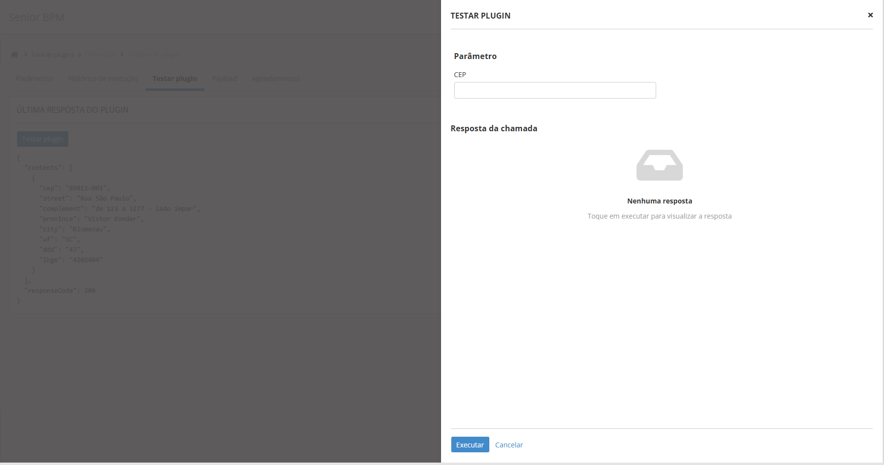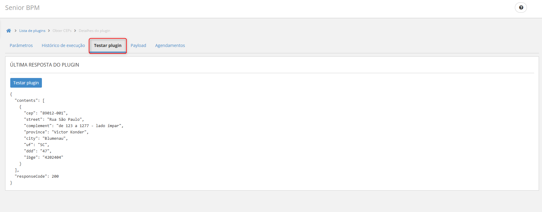 - Para realizar um teste rápido pela Plataforma, acesse a tela do plugin Obter CEPs;