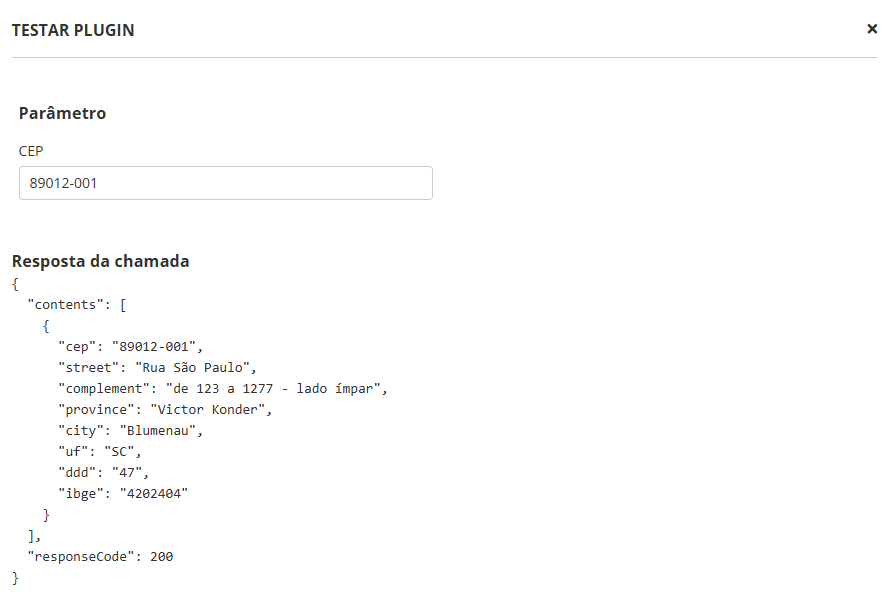 - Ao ser acionado, o plugin se conecta à API ViaCep e retorna o endereço correspondente.