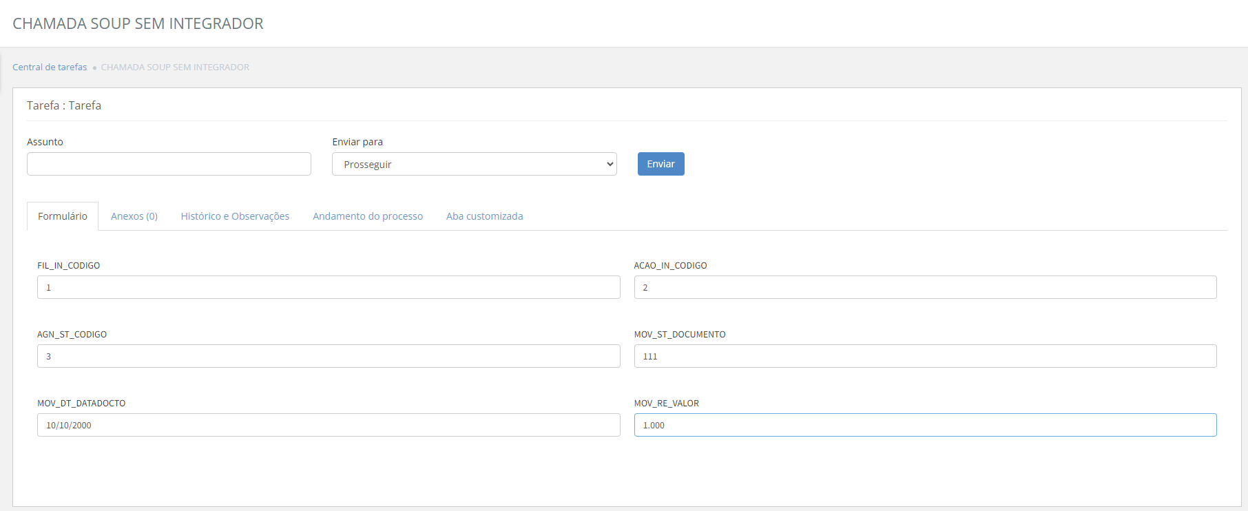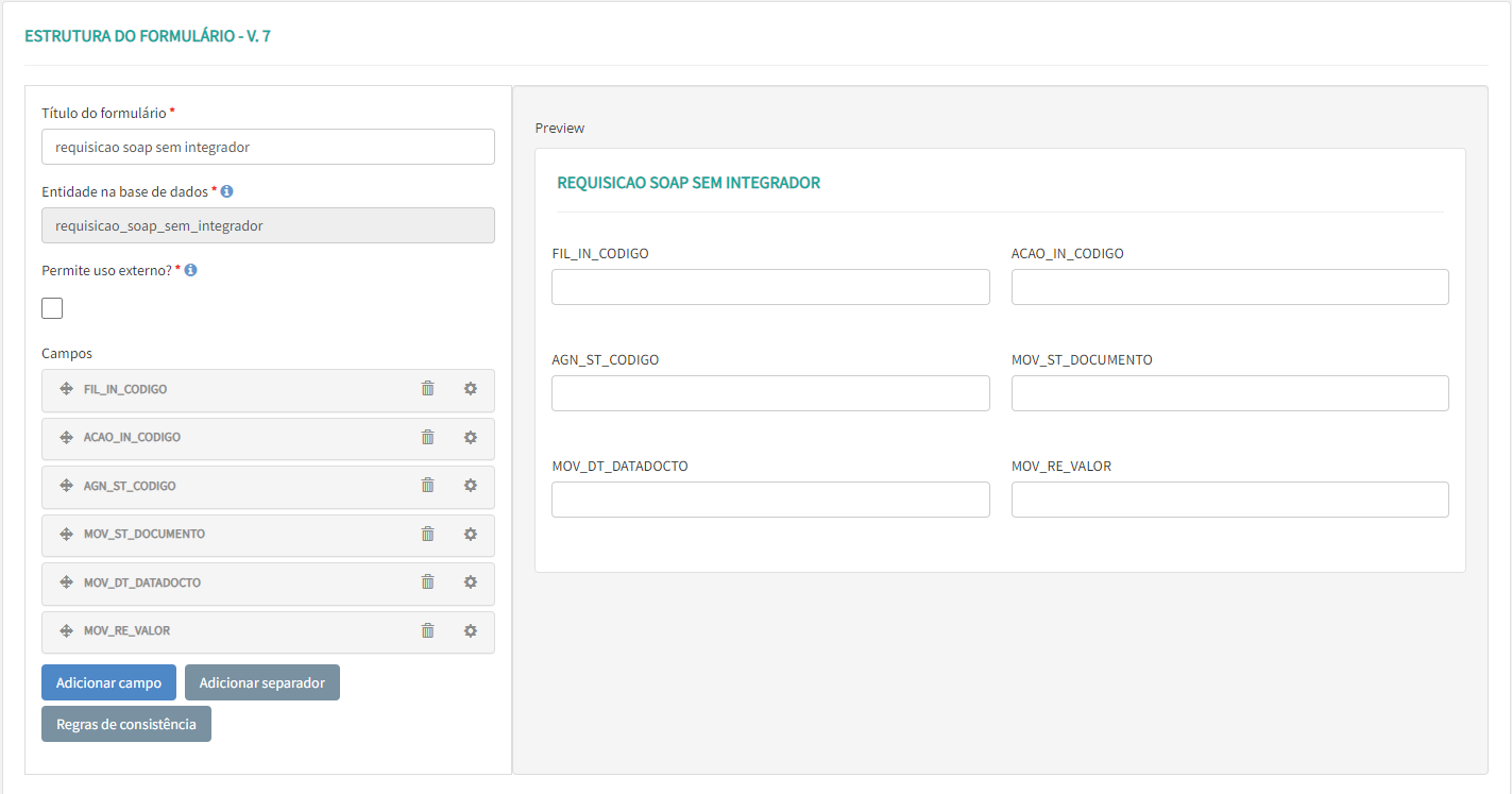 Após salvar e publicar o formulário, as integrações estarão ativadas para o envio. Quando o usuário preencher o formulário, esses campos serão utilizados como variáveis para preencher a requisição.