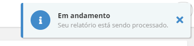 Clicando no botão imprimir, automaticamente são disparadas duas notificações, exibidas em momentos distintos, a primeira exibida é Em andamento, informando que o relatório está sendo processado.