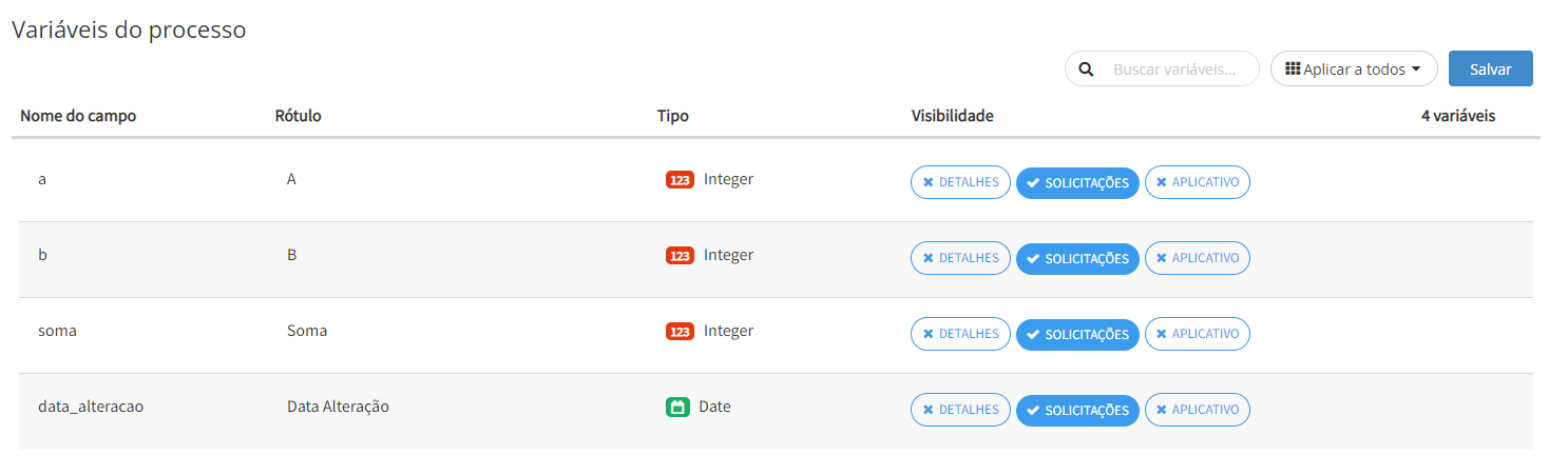 Essa configuração é referente as variáveis do processo, para realizar a configuração, acesse: