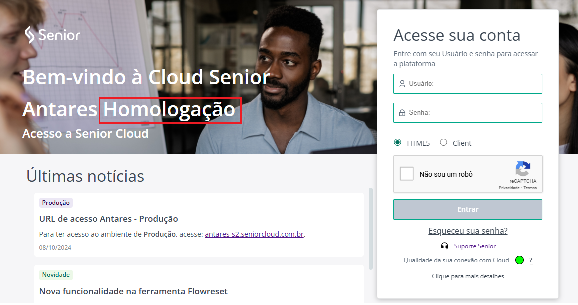 - Homologação: https://hmlantares-s2.seniorcloud.com.br