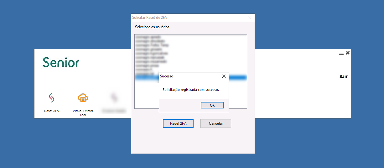 - Na sequência selecione o usuário desejado e clique em Reset 2FA. Após a confirmação, clique em OK.