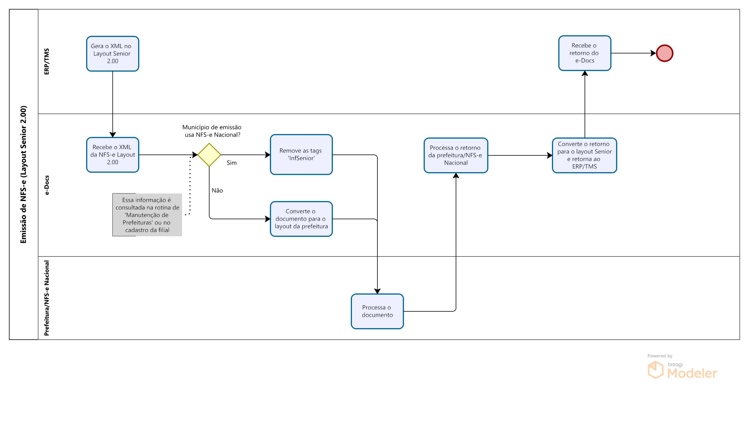- o ERP/TMS Senior esteja parametrizado para gerar o layout 2.00 para o e-Docs. Para clientes do ERP Senior XT, clique aqui e saiba como configurar.