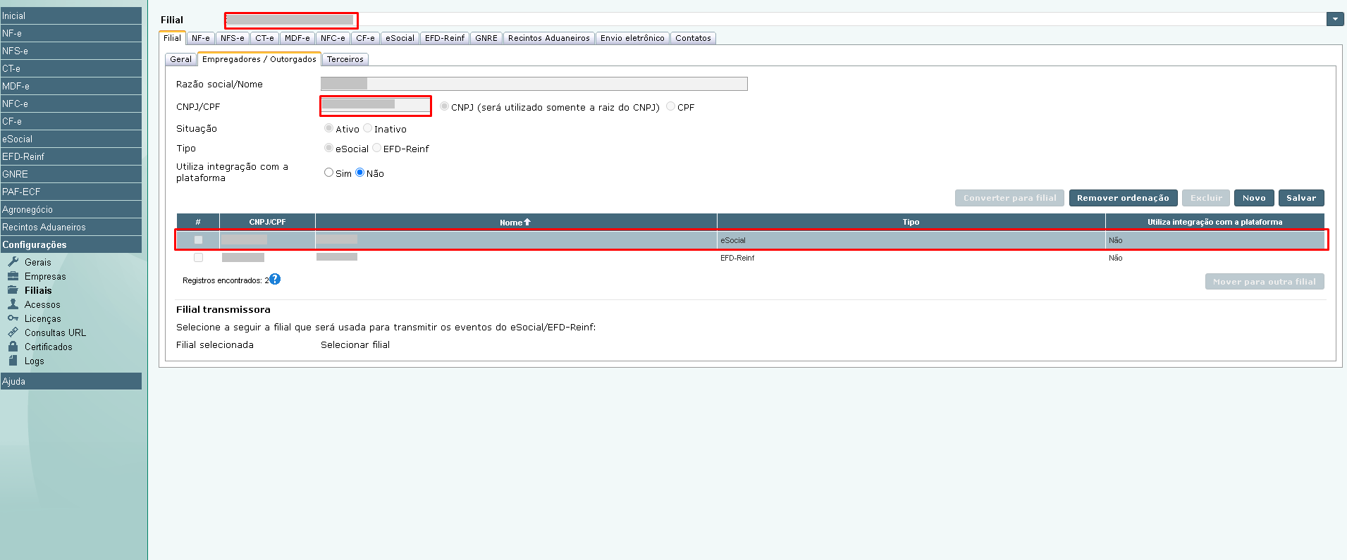Após a atualização do sistema para a versão 5.8.13.34, todos os Empregadores/Outorgados passarão a constar com o tipo de integração com a plataforma configurado com o valor padrão Não. Sendo assim, será necessário aplicar a nova configuração para continuar com a emissão dos eventos gerados na plataforma. Para isso, siga os seguintes passos: