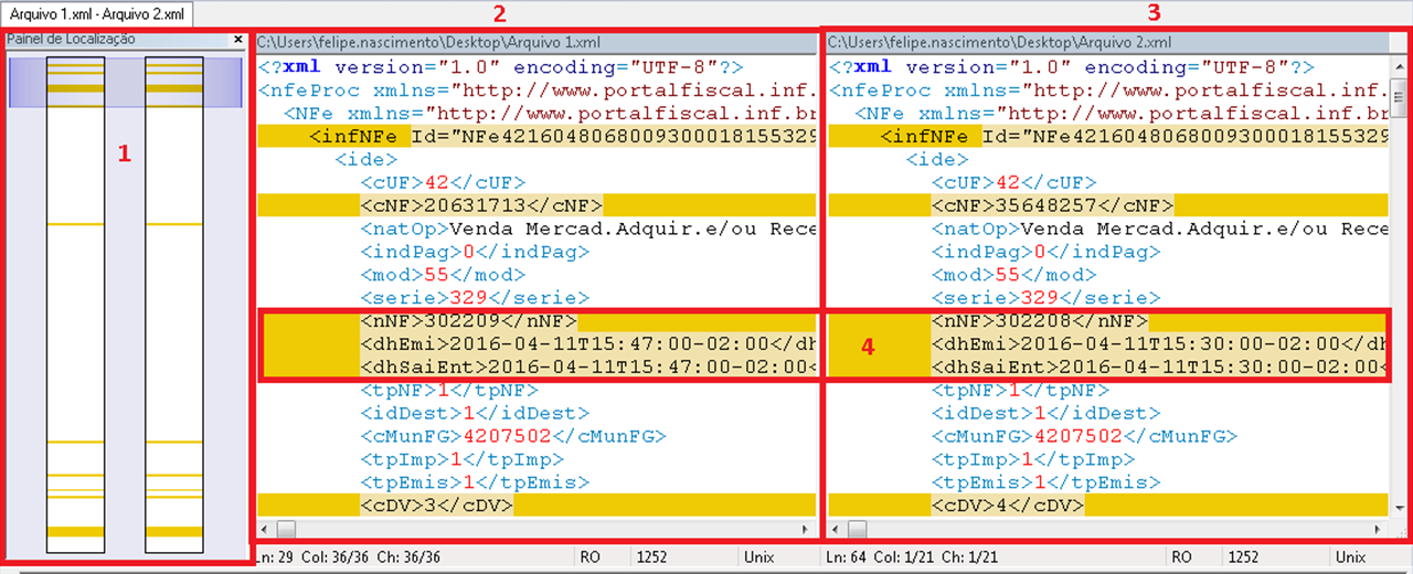 A comparação de arquivos XMLs é útil para identificar divergências entre os arquivos. Logicamente, a comparação pode ser feita entre dois arquivos que não sejam XML, no entanto, como a maior parte de documentos eletrônicos utiliza o padrão XML, este tópico tem objetivo na comparação de XMLs.
