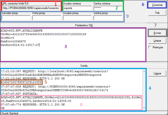 5. Deve ser retornado no campo Saída o identificador de conexão;
