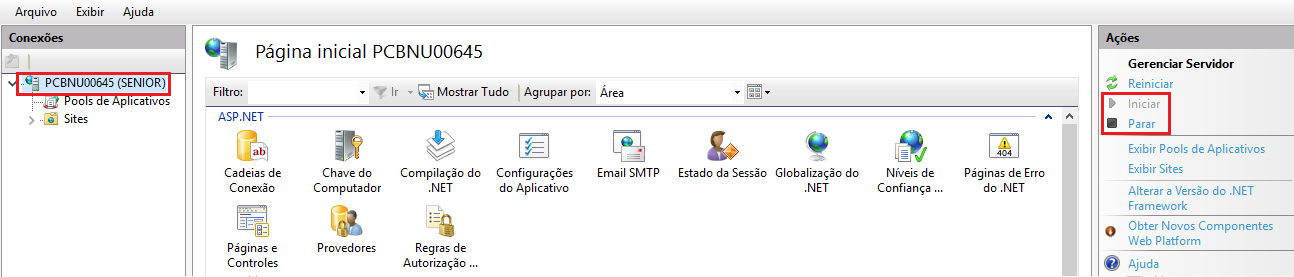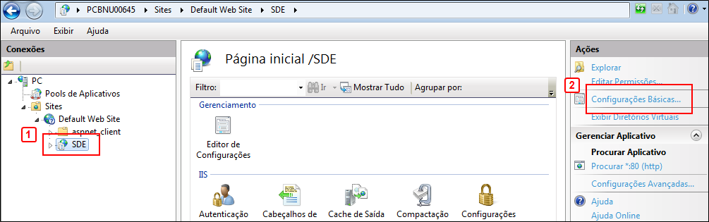 O aplicativo para gerenciamento do IIS está disponível em Painel de Controle > Todos os Itens do Painel de Controle > Ferramentas Administrativas > Gerenciador do Serviços de Informações da Internet (IIS).