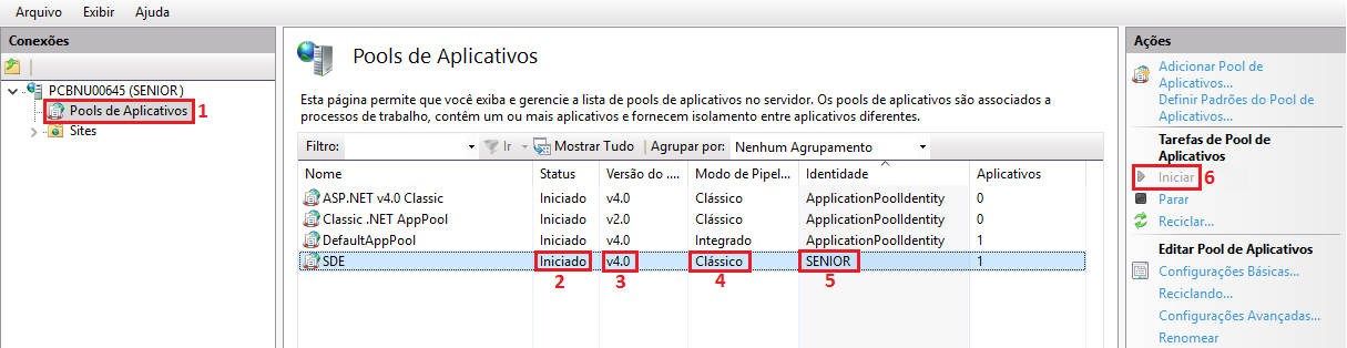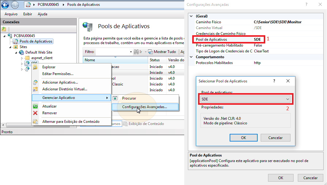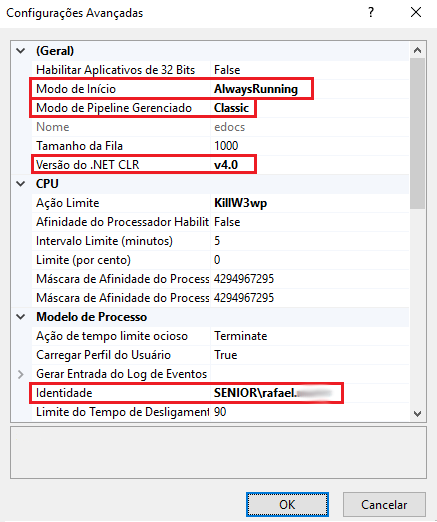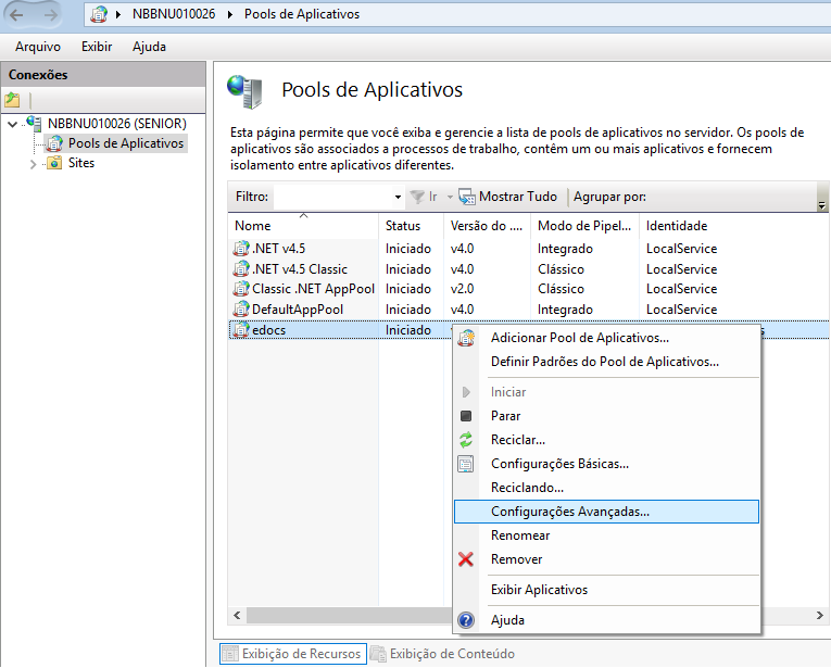 Caso sejam utilizadas mais instâncias do sistema (exemplo: Produção e Homologação), as configurações devem ser aplicadas para todas as instâncias (levando em conta a aplicação Monitor criada para cada instância e o Pool de Aplicativos utilizado por cada instância).