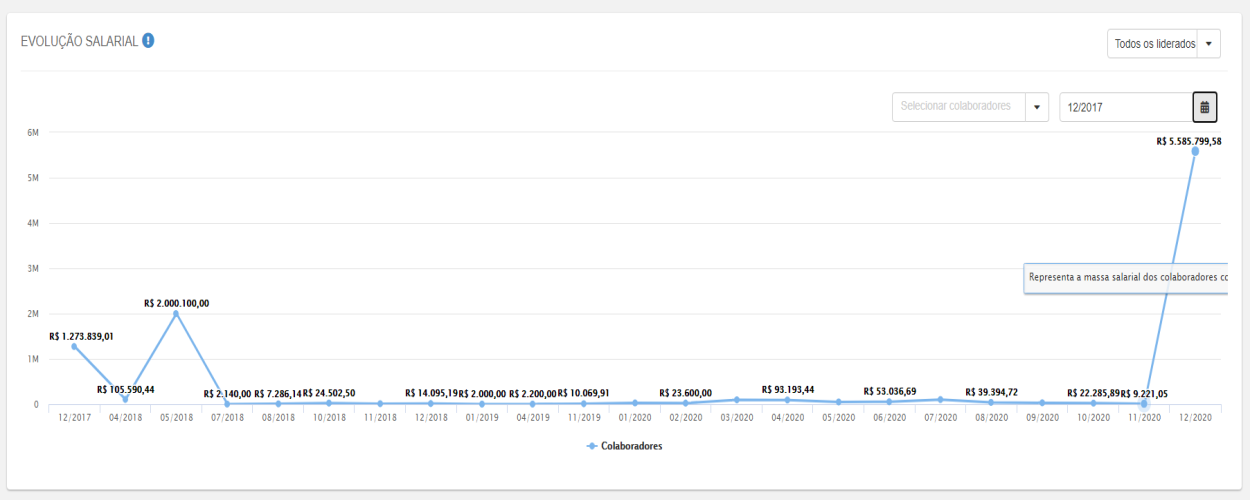 This chart allows you to check the salary evolution of the team, displaying variations that occurred in the worker's salaries. These are some characteristics of the information displayed by the chart:
