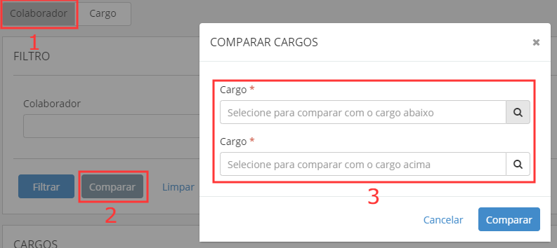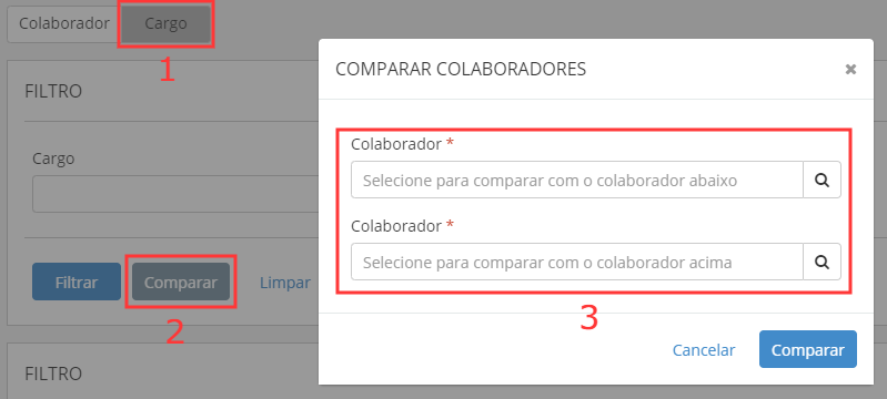 If there is any job position defined in the filter when the comparison is made, the system will also show the compliance level of the employees in relation to the job position.