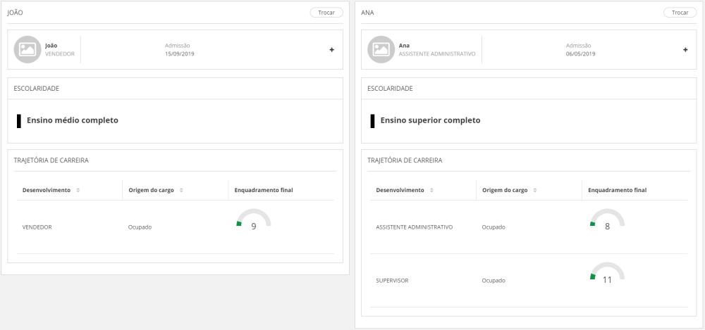 Aiming at a more specific comparison, make sure that there are registered tracks. Otherwise, the system will consider all positions in the company for comparison with the employee in question. For more information, check the documentation on Career, in the item Requirements to consult compliance to job position requirements.