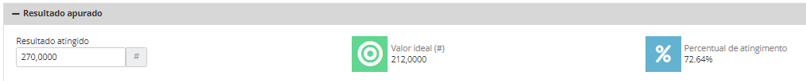 Neste caso, o sistema irá calcular tanto o Percentual de Atingimento, quanto o Percentual de Atingimento Parcial, com base neste mesmo resultado.