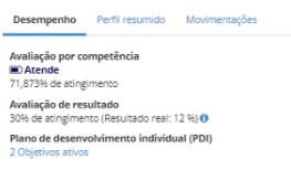 | Percentual de atingimento da avaliação | employeecompetenciesappraisal_percentageofachievement | |