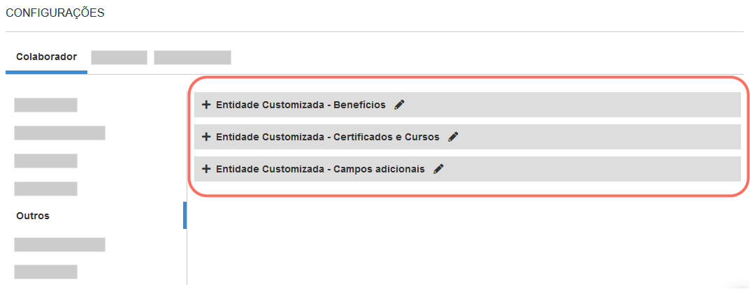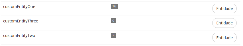 6. For each special entity — customEntityOne, customEntityTwo e customEntityThree — click on the Entitybutton. The screen for adding new fields to the selected entity will appear, just click on New and add the fields you want: