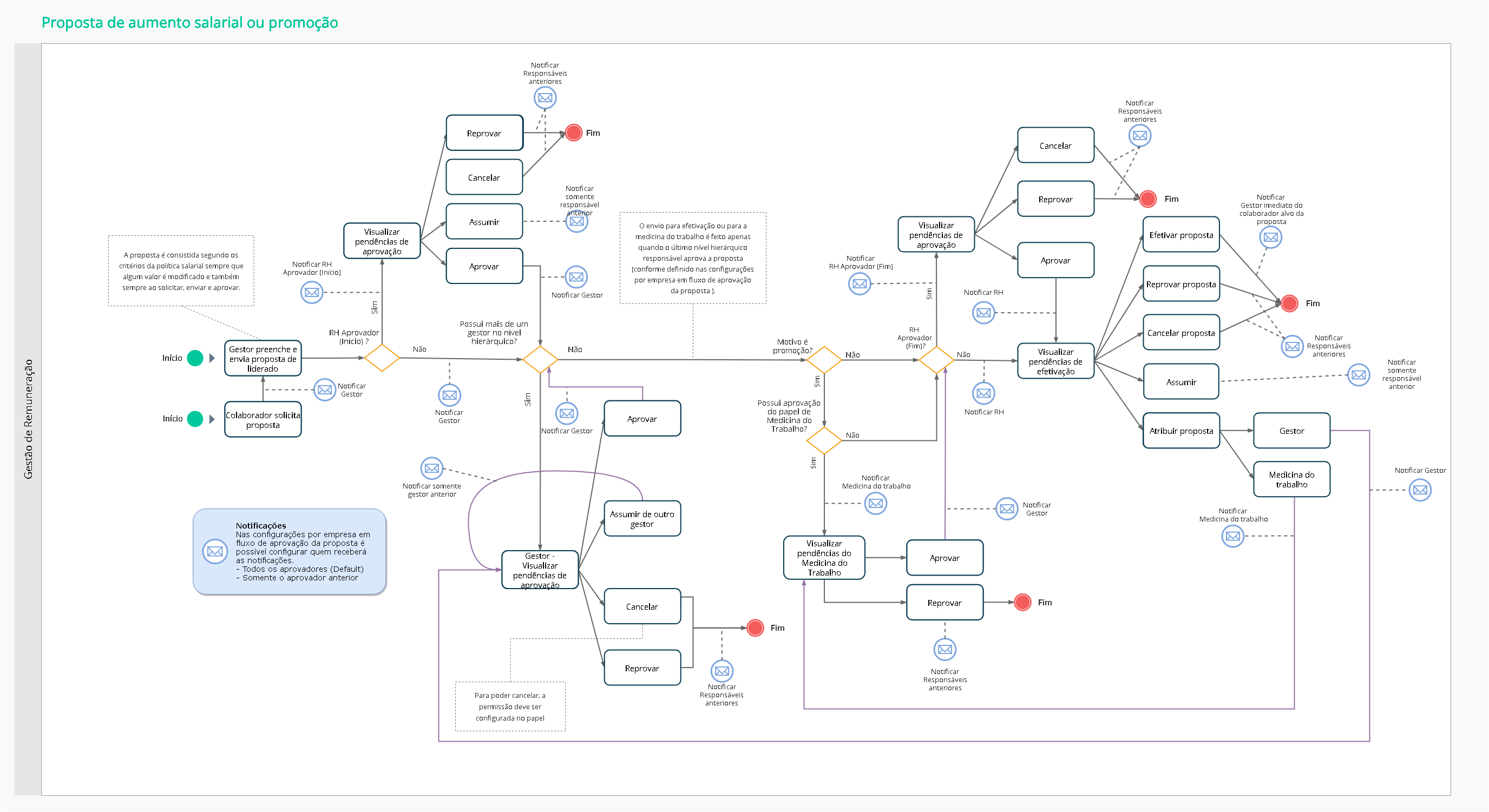 The image below shows this macro flow of the proposal process for job and salary changes. To view it, click on it. To close, just click on it again: