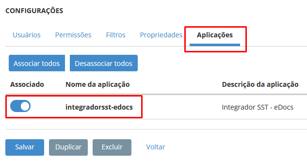 Associar a aplicação criada na etapa anterior ao papel Integração prestadores SST: