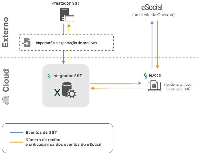 Com esta gestão descentralizada, o Integrador SST cumpre a função de sincronizar estas informações e enviá-las para o eDocs que, por sua vez, faz o envio para o ambiente do eSocial.