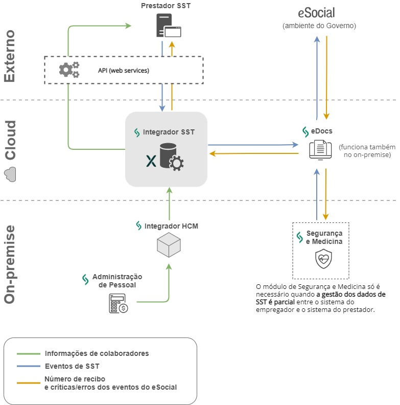 | Senior — Administração de Pessoal / Gestão de Departamento Pessoal | Totalmente pelo Segurança e Medicina da Senior | O uso do Integrador SST é dispensado neste cenário |