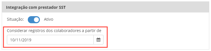 O Integrador SST permite definir a data a partir de quando as pendências de integração que são recebidas do sistema de folha devem ser consideradas.