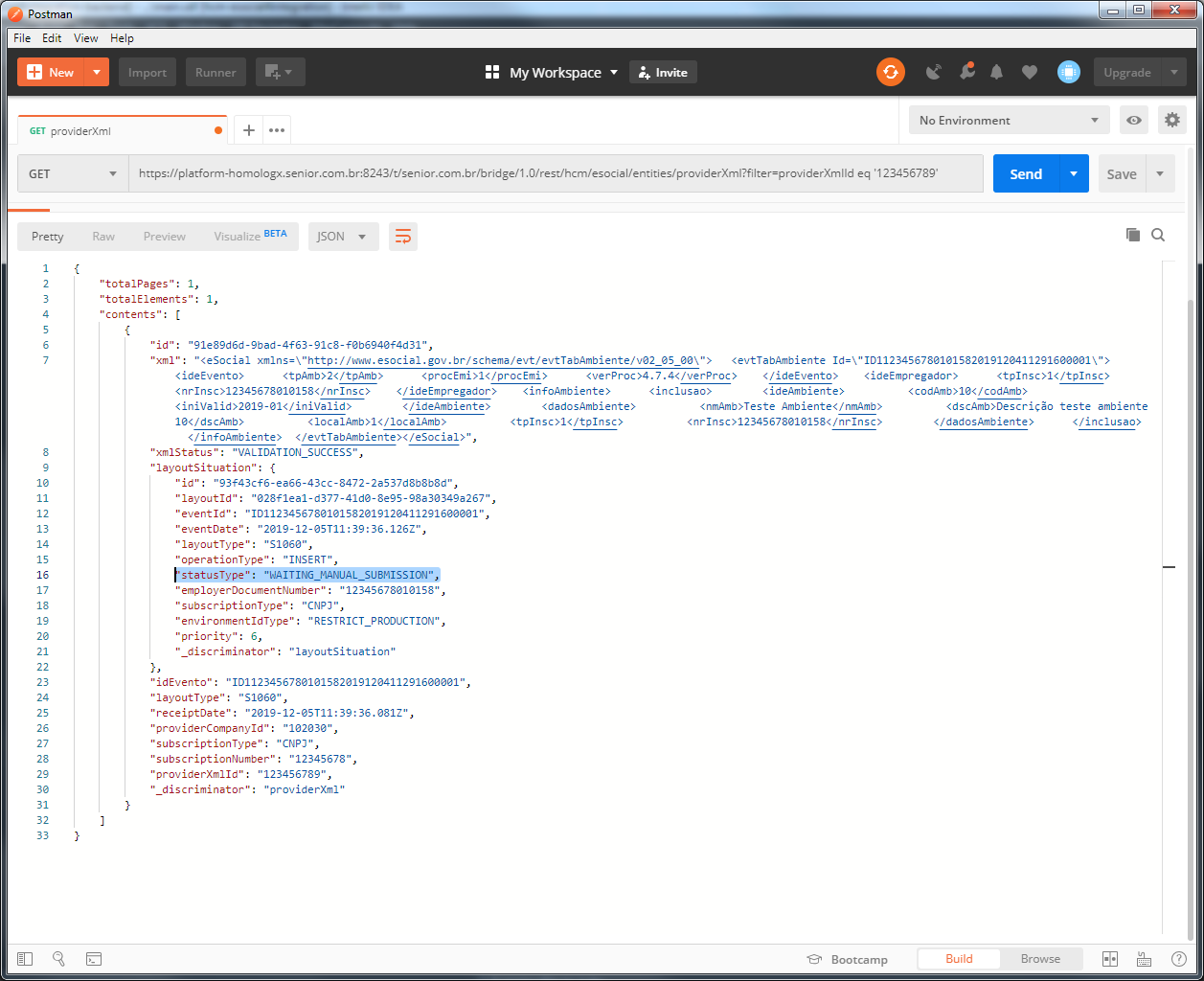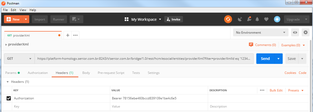 Exemplo:https://platform-homologx.senior.com.br:8243/t/senior.com.br/bridge/1.0/rest/hcm/esocial/entities/providerXml?filter=providerXmlId eq '123456789'