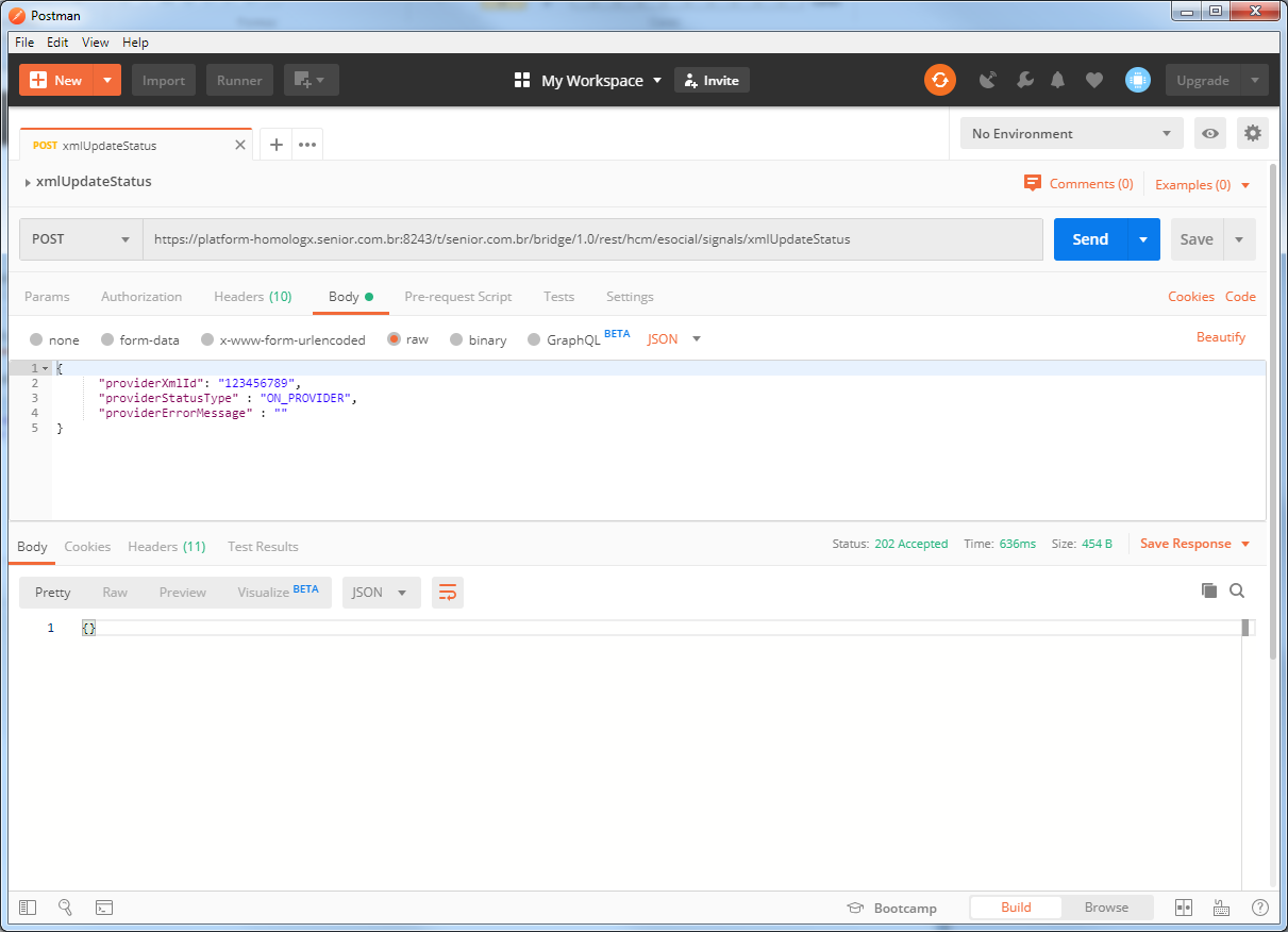 { "providerXmlId": "123456789", "providerStatusType" : "ON_PROVIDER", "providerErrorMessage" : "" } |