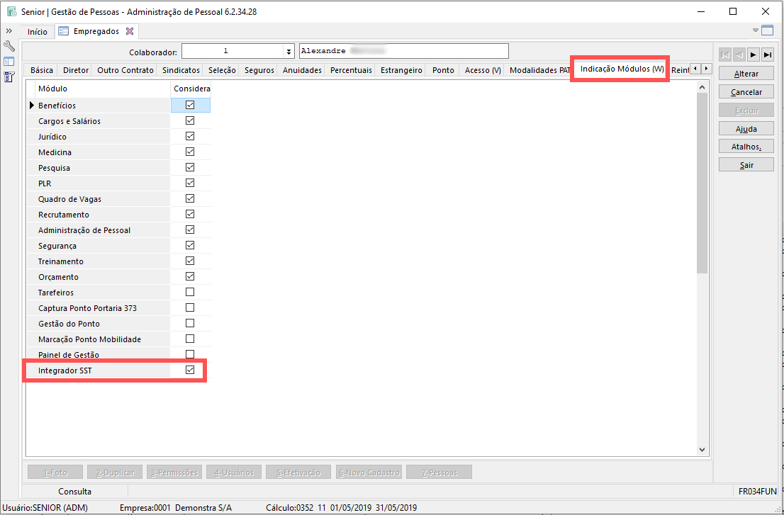 | Indicar os colaboradores que devem ser considerados no Integrador SST |