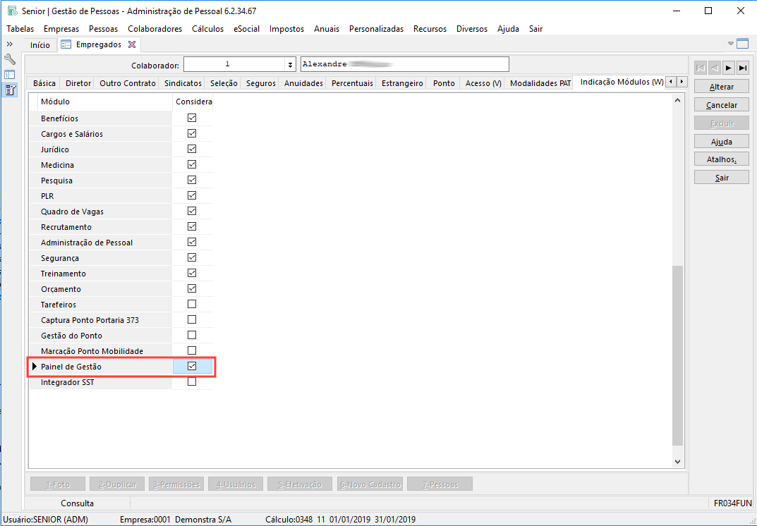 - Procure pelo módulo Painel de Gestão e preencha S - Sim na coluna Considera Contagem para o tipo de colaborador 1 - Empregado.