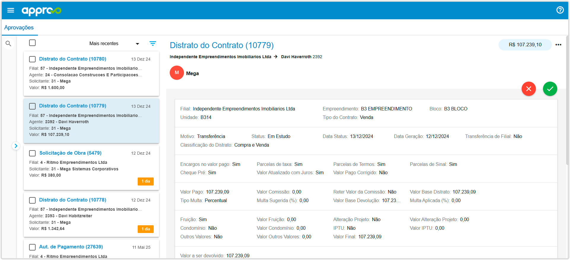 Visando aprimorar o processo de Renegociações na Carteira de Recebíveis, a aprovação e reprovação de renegociações SACOC, que antes era interna, será integrada com o Approvo.