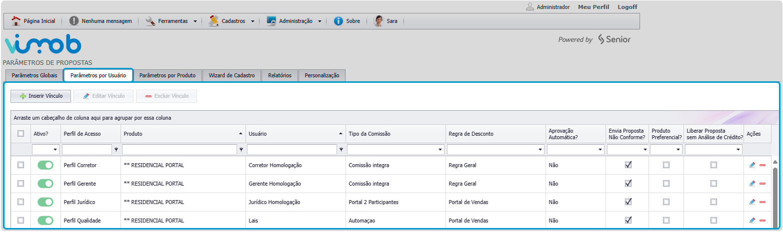 Ao montar um perfil e tentar logar utilizando este perfil, o Vimob não estava logando.