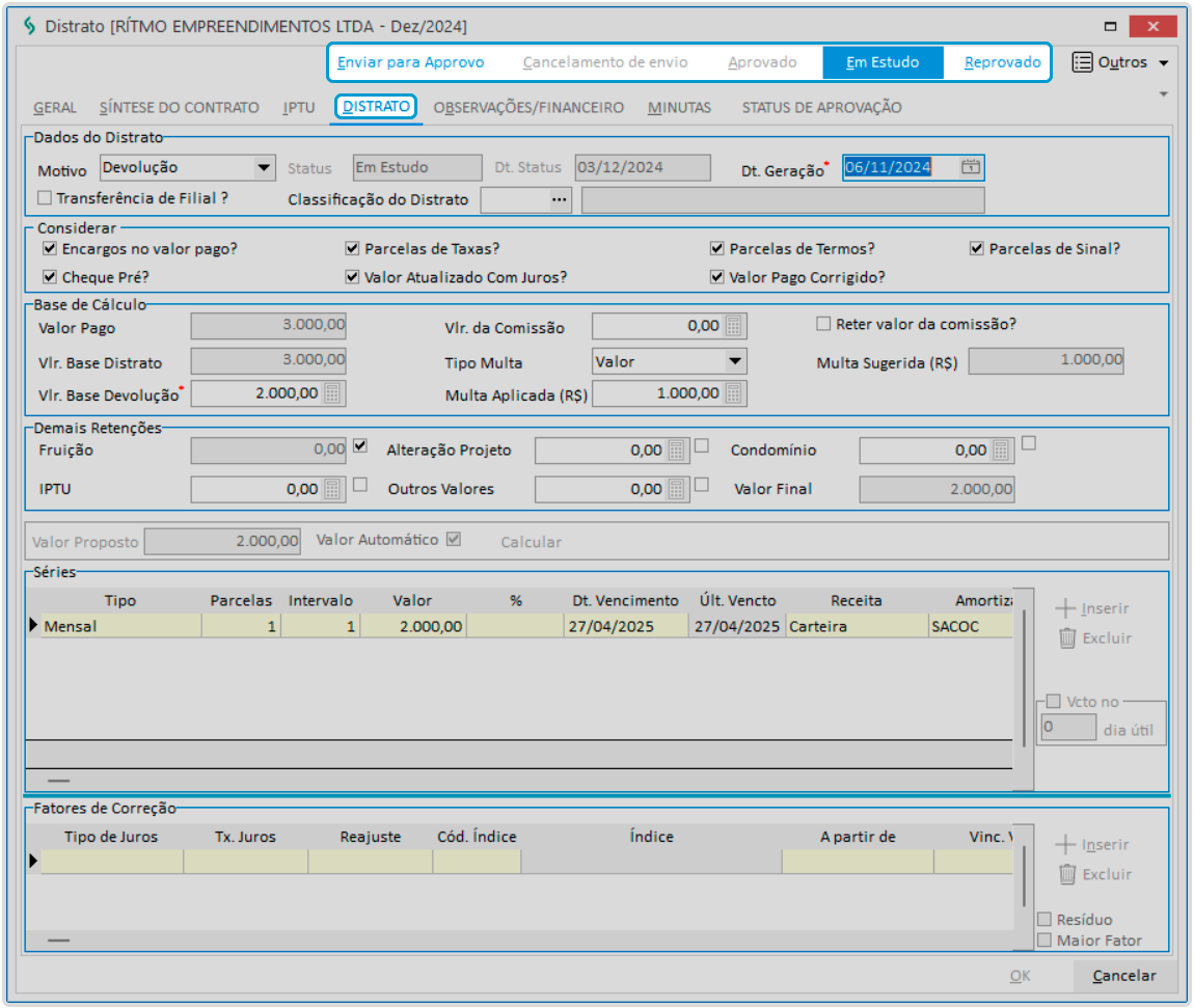 Valores para quitação de um contrato no ERP Senior Mega, estava diferente dos valores apresentados no Portal do Clientes.
