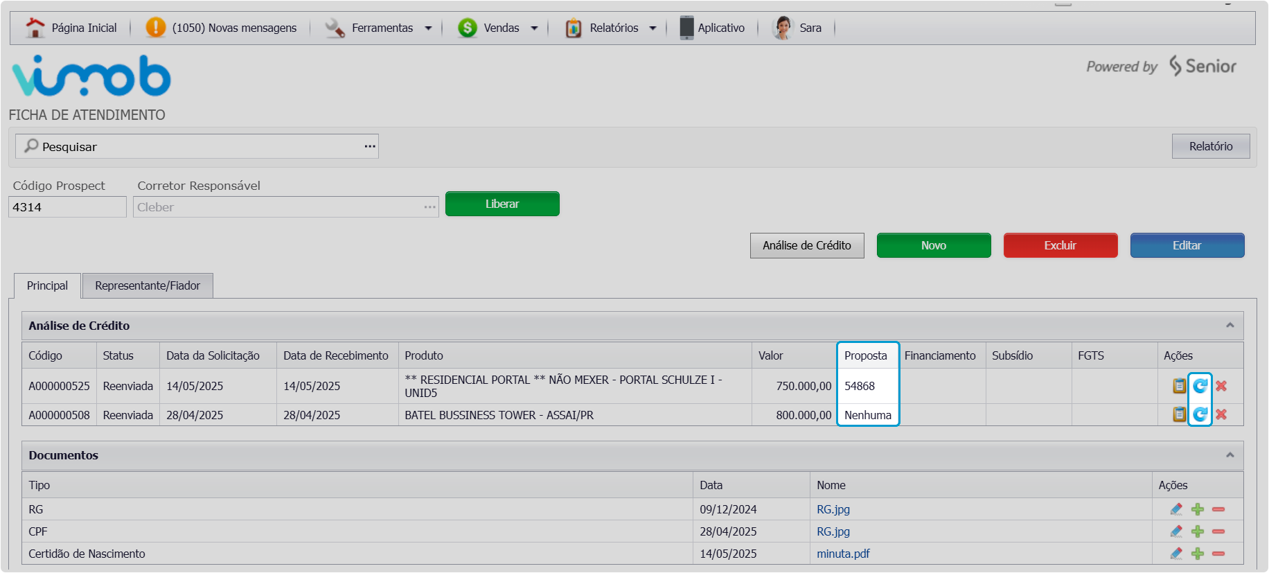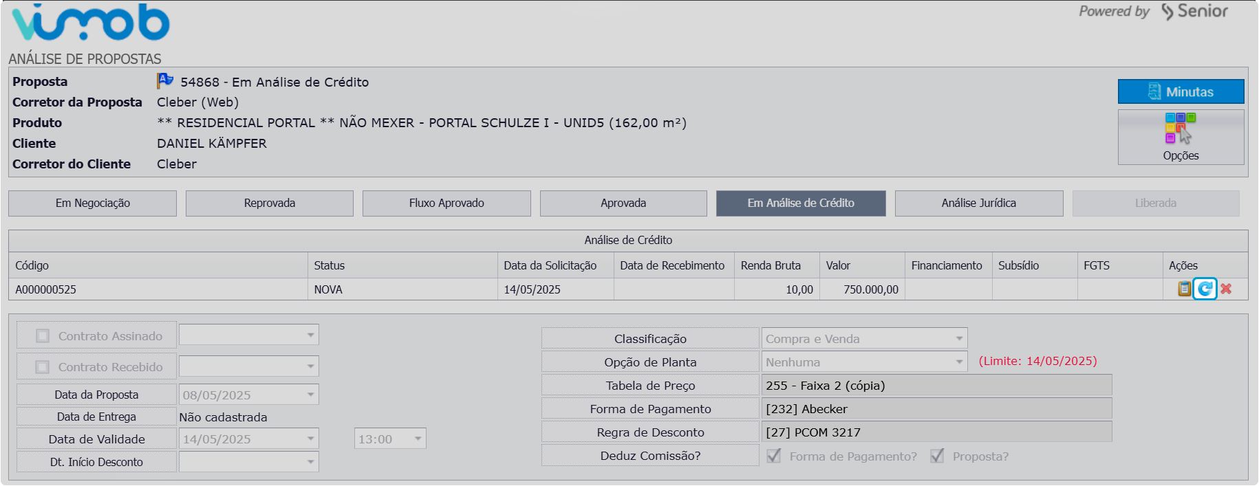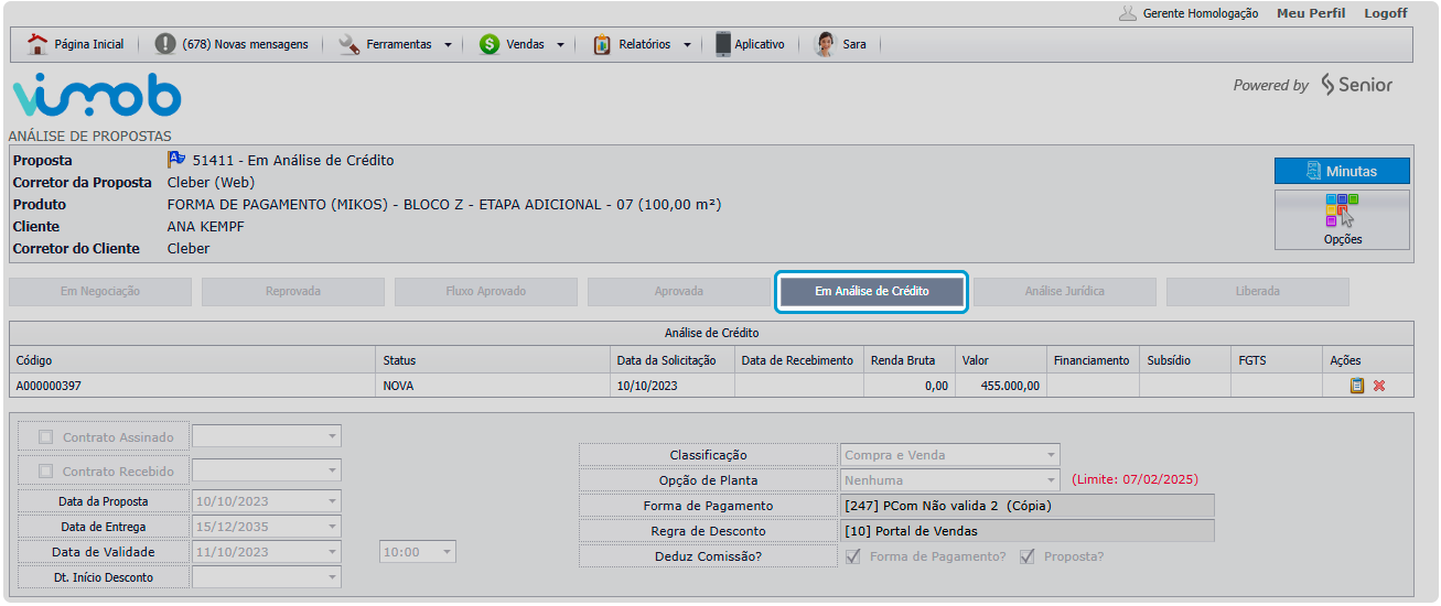 Corrigimos o processo de reprovação pela tela de consulta de proposta, para disponibilizar a unidade apenas quando as propostas forem diferentes de Em Atendimento e Em Estudo.