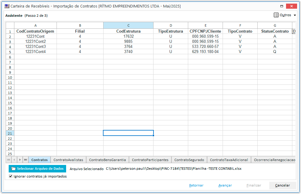 Ao filtrar a tela no momento de selecionar os contratos, a opção para selecioná-los não era habilitada. Agora, o botão é habilitado quando o filtro lista contratos.