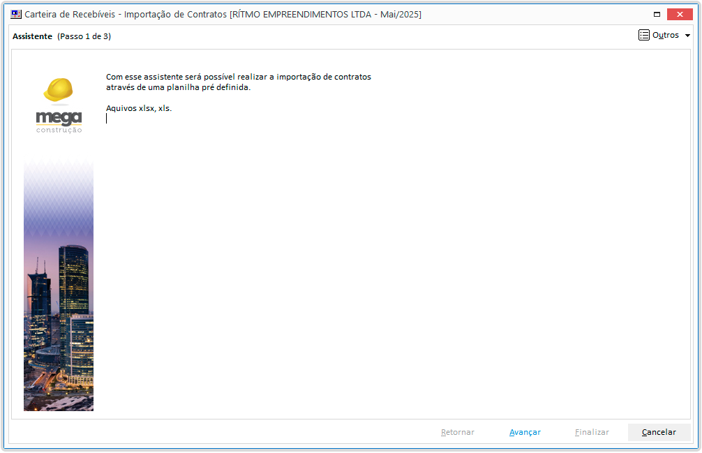 Local: ERP Senior Mega > Construção > Carteira de Recebíveis> Integrações > Agendar Planilhas.