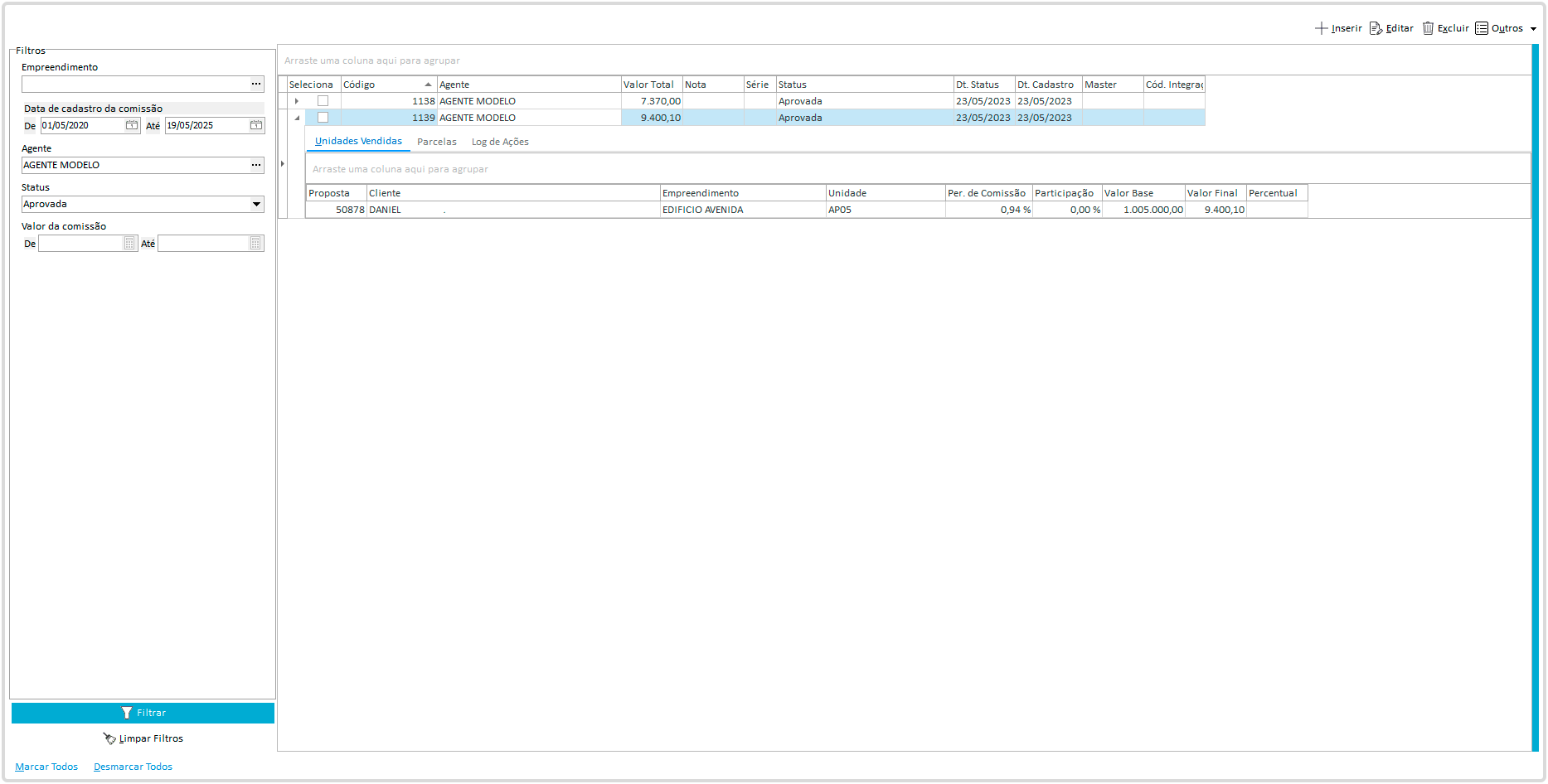 Agora é possível selecionar e lançar individualmente os valores devidos ao corretor, visto que antes o sistema só permitia a seleção de todos os valores de uma proposta ou contrato de uma só vez.