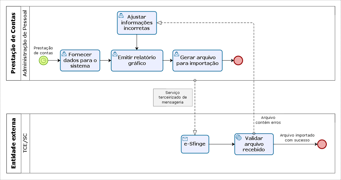 Actualmente, la Gestión de Personas | HCM no posee un servicio nativo de mensajería para el e-Sfinge. Esto significa que el sistema no envía nativamente los archivos .TXT al e-Sfinge y al TCE / SC, siendo necesario buscar un servicio en sociedad tercerizada para esta etapa.