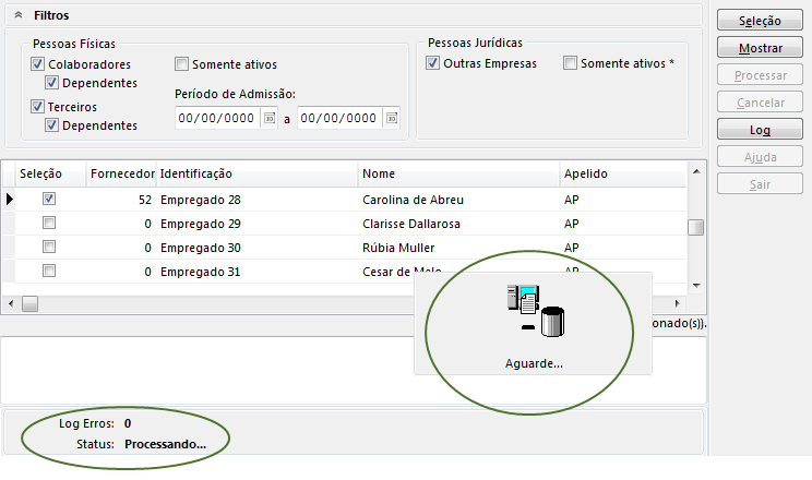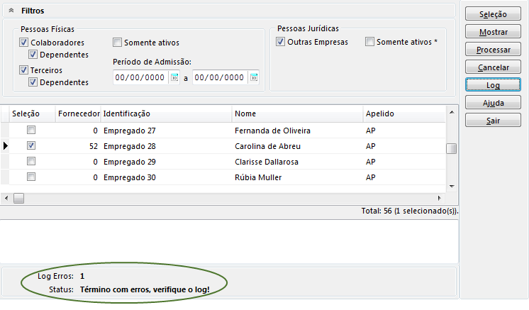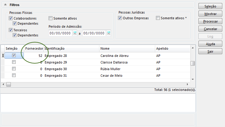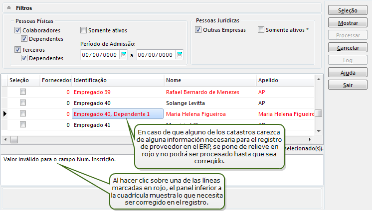 - Todos los registros que fueron enviados como proveedores dejan de ser exhibidos en la rejilla y, para verificar sus códigos y demás informaciones del procesamiento - incluyendo errores, basta hacer clic en el botón Entrar.
