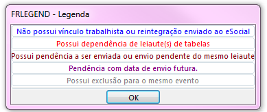 Al final del proceso, se debe usar la pantalla Consulta Pendientes eSocial (FR350STApara el envío manual y la consulta del estado de las pendencias.