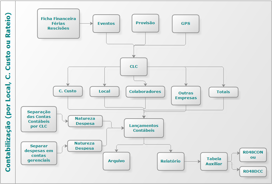 Contabilmente las empresas elaboran una división de los valores gastados para obtener los costos y los gastos realizados, identificando el valor de la mano de obra en los diversos departamentos / sectores de la empresa. En general, la división mínima consiste en asignar, por separado, los gastos administrativos, comerciales y operativos, generando así los llamados Centros de Costos Contables. De esta forma, los empleados deberán estar asignados en el centro de coste al que pertenecen de acuerdo con su departamento / sector. Se deduce entonces que los gastos y los ingresos pueden ser comprobados por C.Custo y el activo y el pasivo no. Conviene a las empresas saber cuánto ha costado la mano de obra (salarios) de cada área, pero de nada importa cuánto tuvieron de salario líquido para recibir o cuánto de descuento de farmacia o mercado tuvieron.