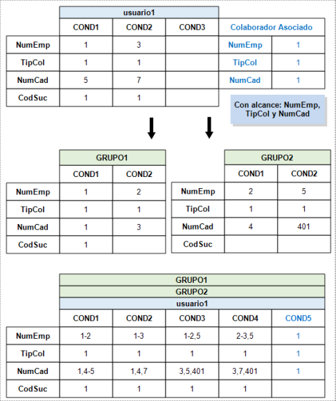 El alcance relativo del colaborador asociado siempre será definido como una nueva condición, aislada de las demás.
