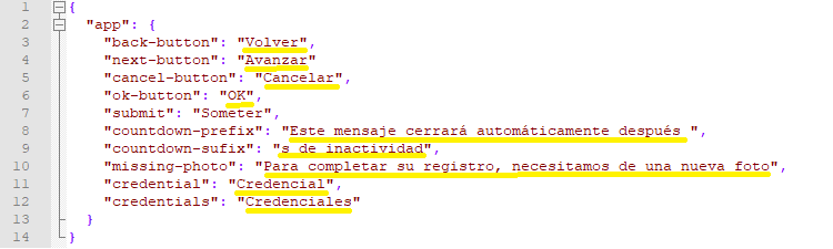 Los archivos son compuestos por una llave y su traducción. El usuario debe alterar sólo la traducción, y no la llave, manteniendo la estructura y la puntuación presentadas.