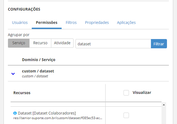 - Opapel del usuario que está tratando de ver la página o la página de destino debe tener permiso en elconjunto de datos en los siguientes dominios/servicios: